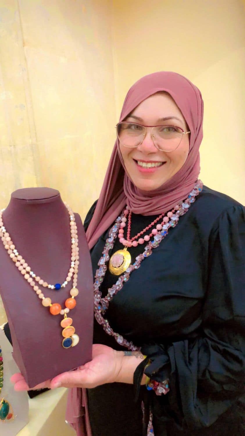 و أكدت لنا ان الإكسسوارات هو موروث تقليدي وجب المحافظة عليه و تطويره بتطور العصر و التركيز على تناسق الألوان بطريقة عصرية ،و أضافت انها تطمح للعالمية.