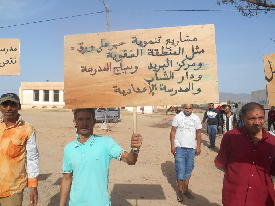 على خلفية المطالبة بتفعيل العديد من المشاريع التنموية المبرمجة والمعطلة نفذت صباح اليوم اعداد كبيرة من متساكني منطقة اولاد عامر التابعة لعمادة رحيمة بحاجب العيونى وقفة احتجاجية بالطريق الوطنية عدد 3 التي وقع قطعها أمام جميع السيارات المستعملة للطريق لمدة تتجاوز الساعتين تعطلت خلالها جميع المواصلات باتجاه شمال وجنوب ووسط البلاد التونسية هذا وتتمثل أبرز مطالب المحتجين في الاسراع بتفعيل صنداج المنطقة السقوية رحيمة 3 مع تسديد الشغور الحاصل في خطة عمدة بالمنطقة منذ سنة 2010 مع المطالبة ببعث نواة لمكتب بريد بالجهة والاسراع بتسييج المدرسة الابتدائية بأولاد عامر التي يشكو شبابها من البطالة والتهميش في ظل عدم توفر فرص قارة للتشغيل الشيء الذي يحتم على الجميع مغادرة المنطقة المهمشة والاتجاه نحو المدن الساحلية .. هذا وقد جرت مفاوضات مطولة بين عموم المتساكنين ومعتمد حاجب العيون حيث أسفرت نهاية المفاوضات على تحول وفد من أبناء الجهة لمقابلة والي القيروان وابلاغه اهم مطالب المنطقة التي لم تشملها نسائم الثورة والتنمية الشاملة.