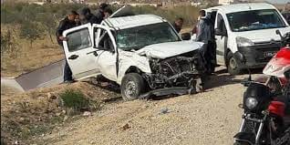 جد اليوم حادث مرور بجهة جلمة من ولاية سيدي بوزيد أسفر عن وفاة شخصين على عين المكان وإصابة شخصين وتتمثل صورة الحادثة في اصطدام سيارتين على الطريق الرئيسية.